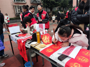 在会场的另外一角,特邀的书法老师和小志愿者正在为居民们书写春联,每一笔、每一划都凝聚着深厚的文化底蕴,为居民们送上浓浓的新春祝福。此外丢骰子、蒙眼弹瓶盖、飞镖大作战等游园游戏也深受居民欢迎;还有红红火火的刮刮乐兑奖区域,也给居民们带来了乐趣与幸运,为居民朋友们送上新一年的好运气、好福气!活动现场弥漫着浓浓的年味,到处都能听到居民们的欢声笑语,一起感受这红红火火的过年氛围。