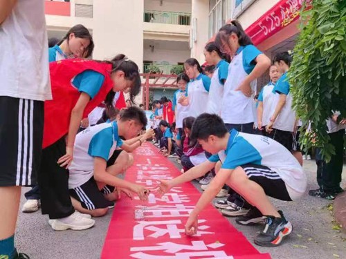 本次活动围绕心理健康主题设计了形式多样、内容丰富的活动,包括心理知识宣传、心理班会课、“阳光.力量.成长”&“助力中考”——为毕业班学长学姐送祝福签名留言活动、“爱的抱抱”——心理咨询现场预约、亲子“ 一封家书”等系列活动。向师生及家长普及心理健康知识,引导师生家长正确认识自己、悦纳自我,更好地爱自己、爱他人。