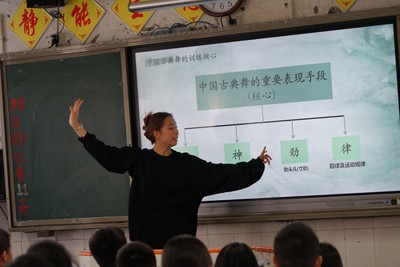 成都列五中学青年教师成柯苇老师给实验中学老师们带来一堂课例展示课——《中国古典舞》,柯老师在课堂上,用精心的课堂设计、动听的音乐旋律、优美的舞姿展示,生动诠释了中国古典舞声韵结合,形神兼备的特点,让同学们深深感受到艺术教学的无穷魅力,领悟了中华传统文化艺术的博大精深,培养了学生艺术素养和审美能力。