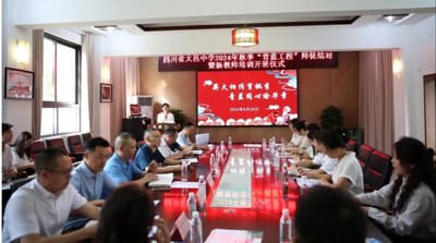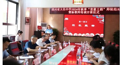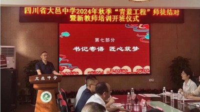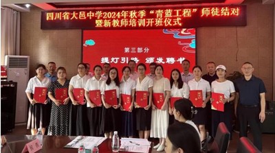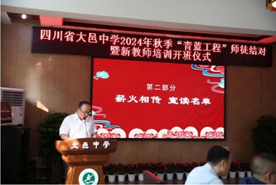 为贯彻新时代党的教育方针,落实中共中央、国务院印发《关于弘扬教育家精神 加强新时代高素质专业化教师队伍建设的意见》,结合《大邑教育高质量发展三年行动计划(2023-2025)》和学校实际,为促使新入职教师尽快了解初高中教育教学特点,熟悉新课改理念和基本要求,掌握课堂教学技能,适应学校教育教学工作,8月28日,我校举行了以“薪火相传育桃李 青蓝同心绘华章”为主题的“青蓝工程”师徒结对暨新教师培训开班仪式。学校党委书记聂长志,校长张家智,副校长王波、王大雄参加了开班仪式。
