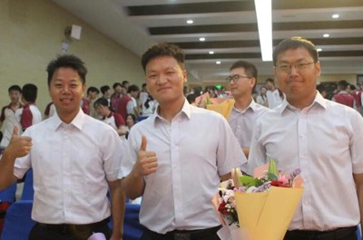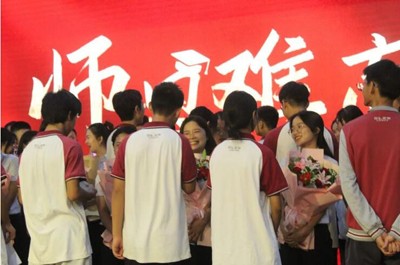 三年时光飞逝,列车即将到站,同学们的成长离不开一路相伴的老师,是老师的言传身教,严慈相济,让同学们从天真烂漫的幼稚孩童成长为有理想、有抱负的翩翩少年。鲜花簇簇,铭谢师恩。学生代表纷纷上台,为所有老师们献上美丽的鲜花,深切表达出他们最诚挚的感谢和最衷心的祝福。
