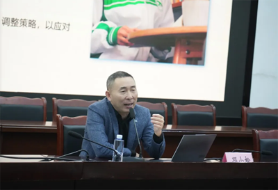 他首先鼓励同学们要敢于迎接青春挑战,面对压力,作好生涯规划,掌握学习方法。同时,引导同学们在新高考改革背景下,从“自身、家庭、国家”三个维度层层深入地分析了作好生涯规划的重要意义。