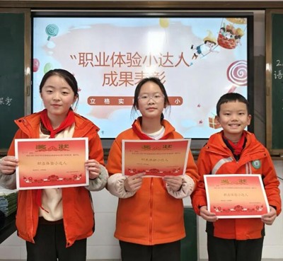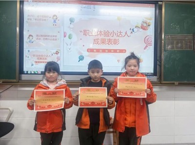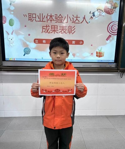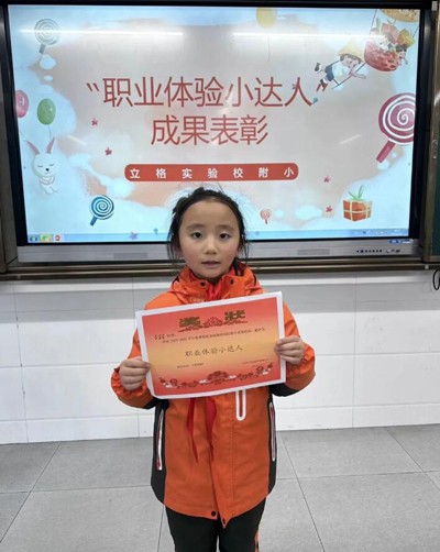 老师认真聆听了同学们的分享,最终每个班选出了三位在本次活动中表现出色的小朋友,被授予“职业体验小达人”称号。
