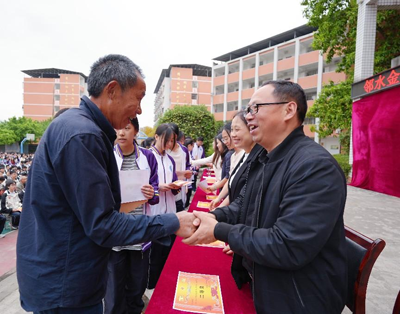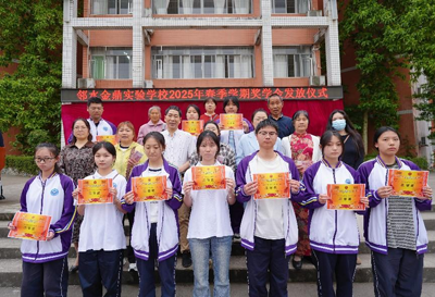 最后,校长甘川邻代表学校,对这次获得奖学金的学生,表示最热烈的祝贺!他说,这份奖金,不仅是一份荣誉的象征,更是一份责任的寄托,它承载着学校对优秀学子的肯定,也寄托着社会对青年一代的期待。同学们要以此为起点,追求更高、更远的目标!相信,每一滴汗水都不会白流,每一次努力都在为未来蓄力。他与大家分享三句话:一是“志之所趋,无远弗届”——愿你们永葆对知识的渴望,让理想成为照亮前路的星辰;二是“厚德载物,知行合一”——愿你们在追求卓越的同时,锤炼品格,成为德才兼备的栋梁;三是“饮水思源,心怀感恩”——愿你们铭记每一份关爱,用行动感恩母校,回馈社会,传递温暖与力量。