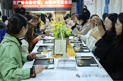 活动伊始,城西中学副校长邓艳致欢迎辞。“今天我们相约城西中学图书室,共同迎来‘党建融合显担当,金融知识进校园’这一富有意义的沙龙活动。在此,我谨代表城西中学全体师生,向中国工商银行中江支行的各位领导及工作人员表示最诚挚的欢迎!”强调学校始终以文化立校、以师德育人,通过校企合作拓宽教师视野,赋能教育创新。此活动彰显企业扎根社会、反哺教育的初心,希望通过金融知识普及与文化体验活动,为教师生活添彩,为教育发展助力。