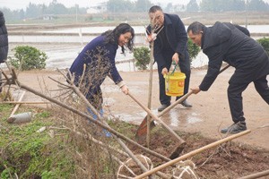 为了提高这次植树的成活率,渠县科协邀请县林保中心高级林业工程师魏淑芳对参加义务植树的人员进行了技术培训。培训结束后,王朝霞带领县科协机关人员来到马鞍村中滩河植树现场,与马鞍村的干部群众一起,按照规范栽植要求,撸起袖子、甩开膀子,挖坑放苗、培土围堰、提水浇灌,每道工序紧密衔接,有条不紊地种下一株株树苗。