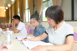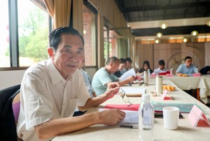 5月5日, 在四川省华蓥市老促会常务理事会召开的一届六次会议现场,参会人员在认真思考研讨内容。