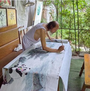 在成都大运会的脚步声中,都江堰市老科协会员、青城画派创始人、武侠剧《天龙八部》《射雕英雄传》美术师李茂槐,向大运会献上了精心创作的巨幅水墨长卷《天府之源 大运熊猫》。