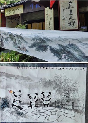 成都大运会期间,巨幅水墨长卷《天府之源 大运熊猫》将在中国道教发源地青城山展示。(都江堰市老科协)