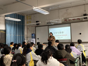 金龙中学位于金堂县金龙镇,是一所全日制公立初级中学,师生共400余人。此次宋雨霜老师送教的班级是八年级一班,她给同学们上了一节主题为“文学与青春--与中学生谈写作的故事”的人文课。从自己如何爱上阅读与写作谈起,向同学们分享阅读写作的经验方法,如在生活中积累并及时整理素材、形成自己的阅读书单、勇于参与各类征文活动、克服写作心理障碍等。最后,以芭茅花为观察对象,宋老师引导同学们作了观察、联想的创意思维练习,同学们写出了句子、三行小诗等。伴随着《夜风中的芭茅花》朗读声,此次送教课程圆满结束。最后,宋老师和同学们合影留念,并赠送了散文集《生命的芭茅花》和杂志《中学生百科》。