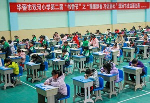 四川省华蓥市双河小学不断加快推进“习语润心”思想政治教育品牌建设,提高学生思想政治教育水平,结合第二届“书香节”活动主题要求,在新年来临之时,举办“翰墨飘香习语润心”现场书法绘画比赛。全校一至六年级共432人,分别参加了硬笔、软笔、绘画现场比赛。经过评委三轮筛选,分别评出一二年级、三四年级、五六年级三个学段的一二三等奖。