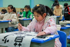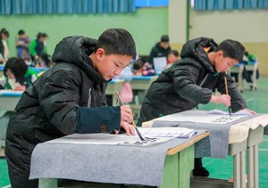 图为12月28日,四川省华蓥市双河小学举办的“翰墨飘香习语润心”书法绘画比赛现场。 (邱海鹰 刘南贤)