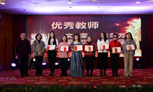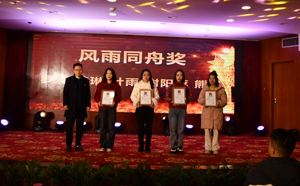 眼里有爱、心里有光、辛勤耕耘,持之以恒。在年会上对不忘初心,干事创业,在德阳神墨教师岗位一线工作坚守10年以上的四名教师颁发了最高荣誉的“风雨同舟奖”。德阳神墨党支部书记、总校长欧治斌为她们颁发了荣誉奖牌。