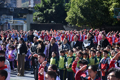庄严的升旗仪式后,六年级4班的吴癸佳洁同学在国旗下向大家讲述了《小山子的故事》,激发了孩子们心中的爱国热情;少先队辅导员白叶老师做了题目为《传承红色基因,做强国好少年》爱国主义讲话;五一中队的全体学生进行了主题为《中华少年》的国旗下展示,他们一句句激昂的歌词和优美的扇子舞表演,让全校师生都沉浸在爱国热情中;活动末尾,全校师生手挥小红旗一同演唱《我和我的祖国》,将本次爱国主义主题教育活动推向高潮。