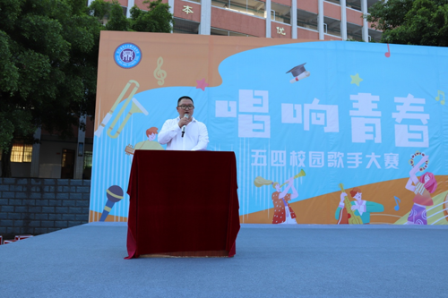 “我们是五月的花海,用青春拥抱时代。我们是初升的太阳,用生命点燃未来。”在嘹亮激昂的团歌后,校长甘川邻作了热情洋溢的致辞。他说:在五四青年节即将来临之际,学校隆重举行校园歌手大赛,目的是弘扬五四精神,让大家了解伟大的五四爱国运动,知来路之艰难,从而激发同学们的爱国情怀,铁心跟党走。回首百年前那场轰轰烈烈的五四运动,革命先烈和志士用鲜血和生命唤起了中华民族的觉醒。