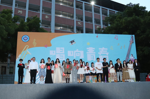 美好的结果总是让人期待的,十佳歌手到底花落谁家?在等待中,师生们用欢呼声迎来刘诗羽老师的精彩演唱《影子》。经评委评比,这次校园歌手大赛,有12位同学获得十佳歌手奖、6位同学获得优秀奖。学校甘立黎董事长、甘川邻校长上台分别为获奖选手颁发了奖杯和奖证。