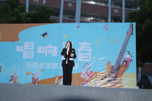 今天,我们发扬五四精神,继承先烈遗志,希望同学们在新时期中国特色社会主义建设中积极探索、勇于创新、刻苦学习、不断追求真理,把美好青春年华献给可爱的祖国。校园有文化,同学们就有文明底蕴;校园有艺术,同学们就有精神升华;校园有歌声,同学们就有青春活力。今天,学校搭建这个平台,就是让同学们放飞自己,用嘹亮的歌声、甜美的音符书写沸腾的青春与火热的年华,展现金鼎莘莘学子不一样的青春风采。请同学们在舞台上用青春和激情尽情展示自己的艺术才华,唱出真正属于自己的辉煌!