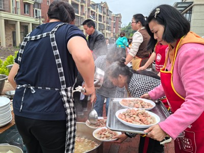 中午,度佳井社区关工委用荣州品牌“坝坝宴”九大碗招待老人们,老人们在坝坝宴中交流畅谈,在九大碗中建起友谊桥梁,让社会基层治理增进民生福址。