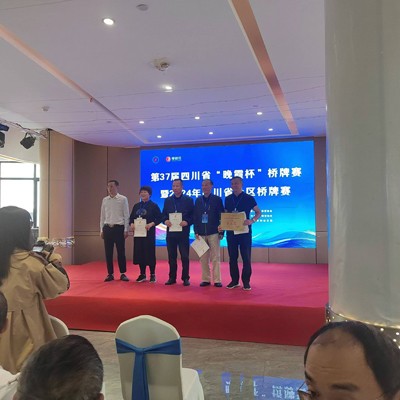 富顺县桥牌协会派出两支队伍分别参加了第37届“晚霞杯”桥牌赛和2024年社区桥牌赛两个赛事的角逐。在11月5日至7日的“晚霞杯”桥牌赛中。经过9轮72副牌的斗智斗勇,富顺县两个队均进入B组第二阶段的比赛,老体协二队发挥稳定,最终获得11名。
