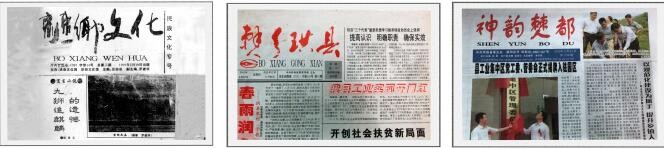 图(1)→我撰写的“九狮追麒麟的遗憾”寓言小说在《僰乡文化》报总第二期发表;图(2)→《僰乡文化》更名为《僰乡珙县》报,我在该报上发表的图、文信息有几百则;图(3)→《僰乡珙县》更名为《神韵僰都》报,图中信息是2012年5月21日,珙县县委书记陈有树、县长叶盛为“县工业集中区党工委、管委会正式挂牌入驻园区”揭牌。
