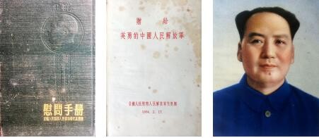 图(1)为《慰问手册》的封面影印件,图(2)为《慰问手册》的内页影印件;图(3)为《慰问手册》内附的毛泽东主席像影印件。