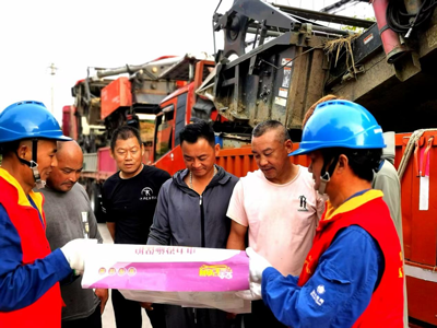 2025年8月7日,“立秋”时节,川东北稻田一片金黄,稻香四溢,“引”来河南、江苏等外地成群的收割机。国网四川华蓥市供电公司中和供电所及时组织安全宣传队,奔赴供区各乡镇收割机停放点,向等待开镰收割的驾驶员宣传《电力法》、《电力设施保护条例》等法律法规,发放宣传资料,讲解真实案例,增强“机手”保护电力设施意识,以防“外破”,确保电网安全。(刘向阳/文图)