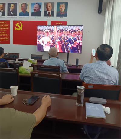 会上,全体老党员们首先认真收看了习近平总书记重要讲话及阅兵仪式全过程。看完阅兵后老同志们兴奋不已,掌声不断,赞叹我们的人民军队越来越强大。支部书记魏明海主持了座谈会,他说:“为什么我们要把本次党员大会安排在今天?就是要通过收看9.3阅兵,使每位老党员铭记历史,展望未来,永远做一个合格的共产党员”。收看完了阅兵仪式后,支部副书记汪永兴,老党员周长志先后激情发言:“他们从本次阅兵的意义谈到我们有如此强大的人民军队,心情更加无比激动。有了坚不可摧的人民军队和伟大祖国的欣欣向荣,相信我们的明天更加美好。”(成都市双流区人大离退休支部 张根福)