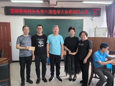 牟位学、周正聪向富顺桥牌协会新一届班子表示祝贺并给予希望。协会顾问邹定春为富顺桥牌协会换届成功即兴作诗以示庆贺:沱江碧浪涌新声,牌协薪传雅意盈。智者筹谋开大局,英才接棒启长征。