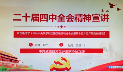 2025年11月2日,四川省广安市武胜县文艺评论家协会召开党支部(扩大)会议,学习党的二十届四中全会精神,研究学习宣传贯彻落实意见。县评协党支部书记尹才干主持会议。西南文化网副总编兼广安工作站站长万大成应邀出席会议,县评协主席团成员及部分骨干会员陈宇、杨方忠、周卫斌、梁晓华、夏震、刘晓明、李胜容、蒙进益、陈丹等参加会议。