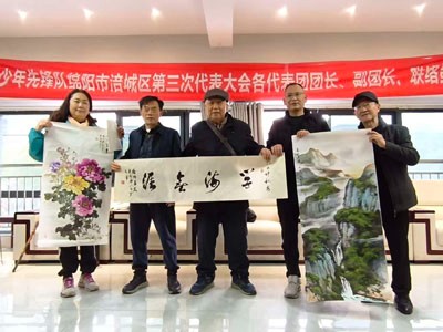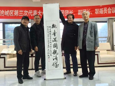 学校工作,在国家、省市区,屡屡获奖,已成为涪城区城北区域的领航学校。莫校长的介绍,赢来了阵阵掌声。接着,绵阳诗书画部的成员们,纷纷给学校赠送了精心准备的诗词书法绘画艺术品。周贤才、侯正桂、梁德沛、陈忠权等几位80多、90多岁的老艺术家,不顾年老体弱,仍然赶到现场,赠送了自己的佳作。