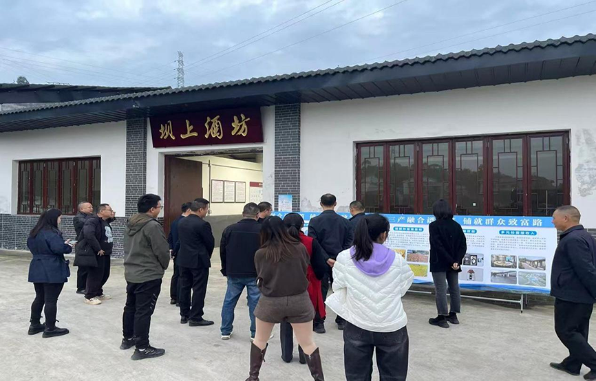 党员们来到溪口镇袁家坝村调研“坝上酒坊”酒业、鱼塘运营情况,分析其“党支部+合作社+农户”运营模式,学习党建引领产业发展的经验。