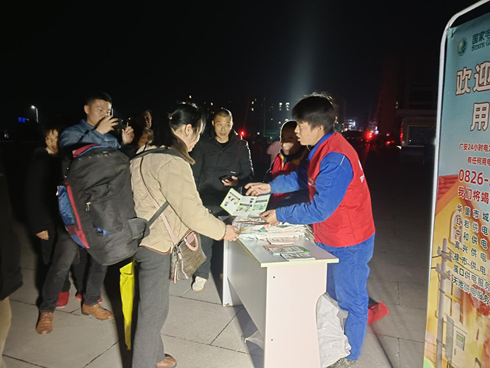据悉,K4826次列车由福州站始发,开行近30个小时抵达高兴站,是春节前返乡客流的重要运输线路。为切实保障返乡群众春节期间用电安全,国网华蓥市供电公司精准对接列车到站时间,组织党员、青年志愿者组成服务小分队,在出站口设立临时服务点,开展“一站式”便民服务。