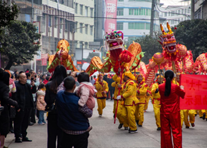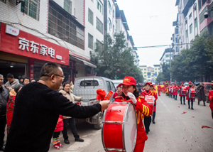 2月5日,营山县回龙场镇场镇十分热闹,这里正进行着“贯彻党的二十大.欢喜闹元宵”活动。金龙、雄狮、军鼓、腰鼓、幺妹彩船歌舞秀、唢呐表演等民俗游行队伍走上街头,他们从万寿街老体协出发,沿建设街、濂溪街、下西街、幸福街、正东街、上东街、桥亭街,最后回到万寿街老体协。精彩的表演吸引着人们驻足观看,观众们纷纷拿起手机,记录下一个个精彩瞬间。