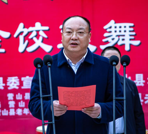 他说,发展成就喜人,我们的老领导老同志自发地自觉地用文艺的形式,讴歌伟大的党,讴歌伟大的祖国,讴歌伟大的时代。同时,也用心地捕捉到发生在身边的喜人变化,编排成动人的文艺节目,用广大群众喜闻乐见的形式,记录下时代进步的足音,反映营山的历史性变化,抒发广大干部群众爱党爱国爱家乡的思想感情,有力地配合了支持了县委、县政府的中心工作,助力营山发展,贡献了聪明才智。今天这台节目,是我们的老干部老同志不计报酬,不图名利,主动配合县委、县政府的中心工作,反映党委政府工作的重大成就,不畏严寒,夜以继日,反复打磨,一丝不苟排练出来的。这是营山丰富多采的群众文化活动中的一大亮点,是我们营山厚重文化的生动体现,也是营山精神文明建设的可喜成果。