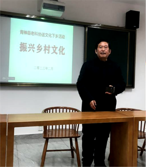 老科协会员万耀举,以评书形式,演讲“万沟村前事今生”,宣讲了万沟村历史渊源,风土人情,传奇人物和生态宜居环境,传承乡村文化,为乡村振兴提供精神激励、智慧支持和道德滋养。