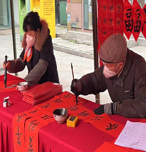 宜宾市老科协与钟鼓楼社区联合举办的书法培训班行课已有十年了。由于疫情原因,书法班2022年下半年的行课受到一定影响,但基本达到教学目标,完成了欧阳询楷书基础入门的学习计划。学员花名册达到24人,坚持到课的稳定学员约14人左右。按照市老科协和社区领导2022年的工作计划安排,书法班为社区培养了一批能够书写春联的学员,并在2023春节前夕,承担了为钟鼓楼社区群众书写并赠送春联400多幅,在参加“潮涌翠屏迎新春”集市活动中发挥了重要作用,受到社区领导的肯定及好评。该项活动由陈苍麟老师、杜桂莲同志、赵小雨同志实施。与此同时,应市老科协教科专委会有关领导安排,由胡戎同志为宜三中退委会、金沙江社区书写并赠送春联近200余幅,受到学校和社区的肯定与好评。