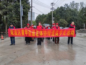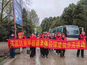 3月12日,春暖花开,风和日丽,双流区黄甲街老年人体育协会组织全街道七个社区老体协负责人和部分老体协会员代表4o人到都江堰柳凤岛开展徒步踏青健身走活动,上午9时,大家兴高采烈的来到徒步目的地,这里风景如画丶空气清新丶环境优美徒步人群在黄甲街道老体协主席付仕水等一班人的带领下大家牵着徒步活动和我参与、我徒步、我快乐的横幅拉开了全街道老体协春季健步行活动序幕。据预测,此序幕后在“五、一”劳动节前,全街道将有7000人次参加春季徒步走健身活动。(付仕水)