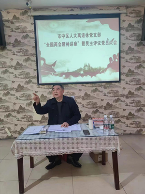 近日,内江市委宣讲团成员、内江市范长江流动大讲堂宣讲团成员,内江市老科协科教专委会副主任、内江市市中区关工委副主任周昭荣为内江市市中区人大常委会离退休干部宣讲全国“两会”精神。会议由区人大离退休党支部书记何志国主持。