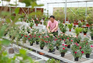 2023年11月2日,四川省华蓥市华龙街道柏木山村榴鑫园艺公司的工人,在精心培育拟在“双11”销售的花草。