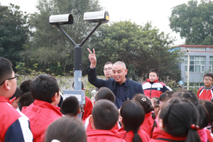 (气象工作人员和师生互动,讲解如何防雷电以及合江本地气象灾害等方面气象常识)