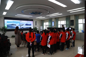 (学生们听气象工作人员介绍光电式数字日照计的作用)