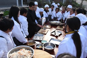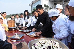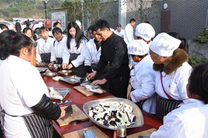 杀鱼、破肚、操刀切鱼片,一群身着白色厨师服的“农妈”,围着一个手握菜刀的小伙子,目不转睛的盯着他“庖丁解牛”般将一条活鱼切成鱼片的全过程。11月22日,在明媚的冬日阳光下,荣县双石镇石塔村39岁的杨春梅和42个兄妹们正在大竹林村新村院坝里,向高级厨师雷义军学厨艺。