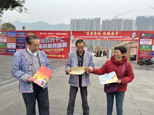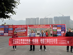 志愿者采用悬挂宣传横幅、发送宣传资料,向广大老年市民、老年购物苗汉群众讲解什么是艾滋病?艾滋病的传播途径?怎样预防艾滋病?倡导广大苗汉市民群众珍惜生命、远离艾滋,特别是感染艾滋病人群要主动早检测、早发现、早治疗、减少艾滋病危害。(兴文老科协:李立权)