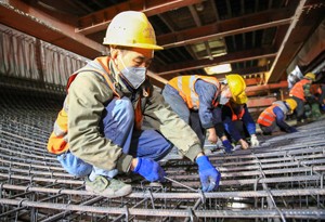 2023年12月18日,中铁十局的建设者克服寒冷天气带来的不利影响,冒着严寒在国家重点项目西渝高铁四川省广安段华蓥市明月镇境内全长1161米的草把场隧道编扎钢筋。