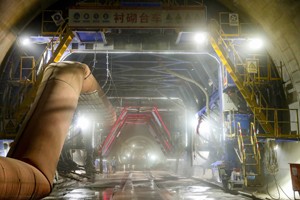2023年12月18日,中铁十局的建设者克服寒冷天气带来的不利影响,冒着严寒在国家重点项目西渝高铁四川省广安段华蓥市庆华镇境内全长2776米的碾子梁隧道紧张施工。(邱海鹰 刘南贤)