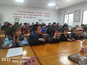 文龙村60余名村民和中小学生生观看阅读了县关工委编制的立德树人直通车《养好德.做好人》32幅挂图,然后组织学生谈观看体会。到会中小学生观看认真,举手发言踊跃。代主任对发言踊跃,回答正确的学生还发给学习用具给予奖劢。