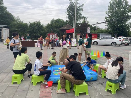 九江街道石井社区关工委还在活动现场还设置了亲子游园活动。通过家长和孩子共同参加游园活动增进亲子的感情。