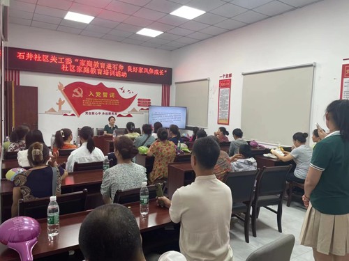 为了进一步培养和践行社会主义核心价值观,大力弘扬孝老爱亲等中华民族传统美德,弘扬优良家风、家训、家规,助力文明城市创建。以培育和践行社会主义核心价值观为根本,以传承好家风、家训、家规,运用生活化的场景、日常化的活动、具象化的载体,引导广大家庭大力弘扬中华优秀传统文化和社会主义家庭文明新风尚,让石井社区居民积极投身家庭文明建设,营造和谐向上的人文环境。6月1日,双流区九江街道石井社区关工委开展了“家庭教育进石井,良好家风伴成长”培训活动。