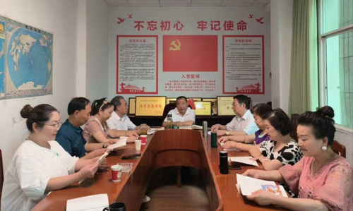 6月19日,平昌县夕阳红艺术团党支部召开理事会理事会议,学习文件,聆听党课,硏究工作。
