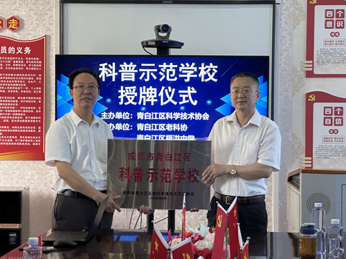 6月19日上午,青白江区老科协在福洪中学校举行科普示范学校授牌仪式。区教育局教育科彭琪、福洪中学校长叶家礼、区老科协会长彭传章、副会长王世福、秘书长张昌宏,老科协教育工委老专家等相关人员参加了授牌仪式。